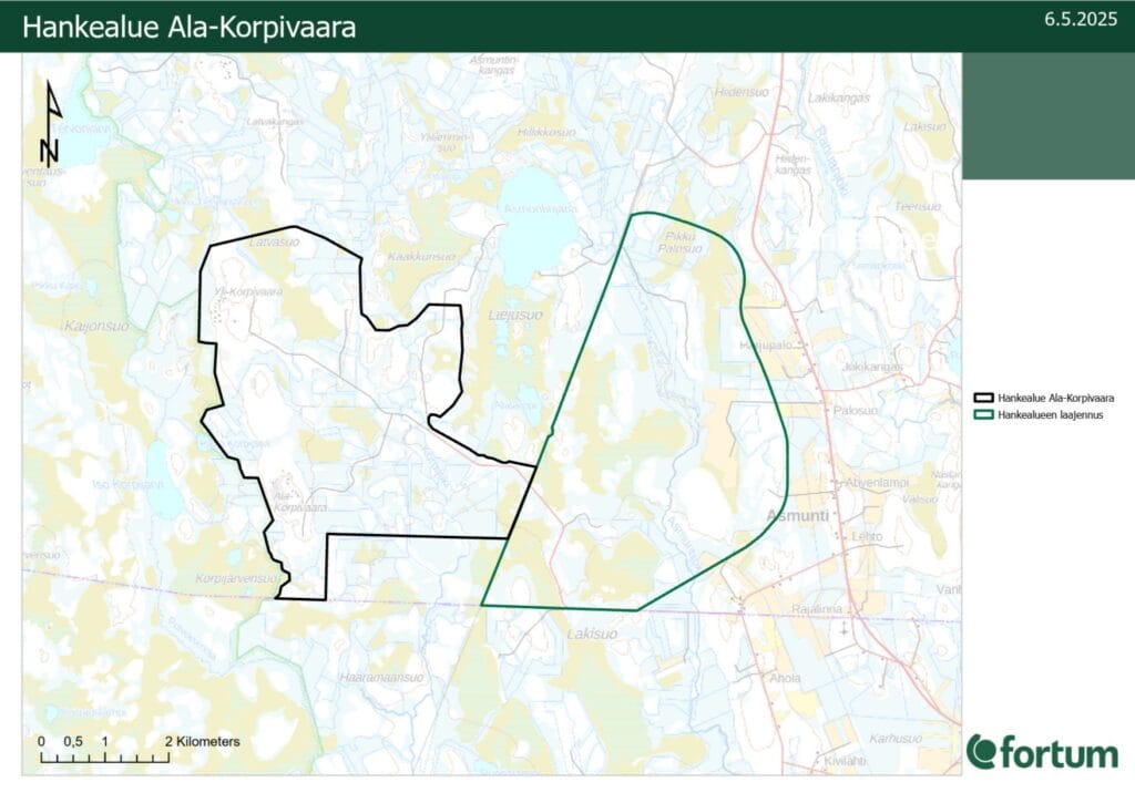 Hanketta kehittää Fortumin omistama Ala-Korpivaara Wind Farm Oy.
