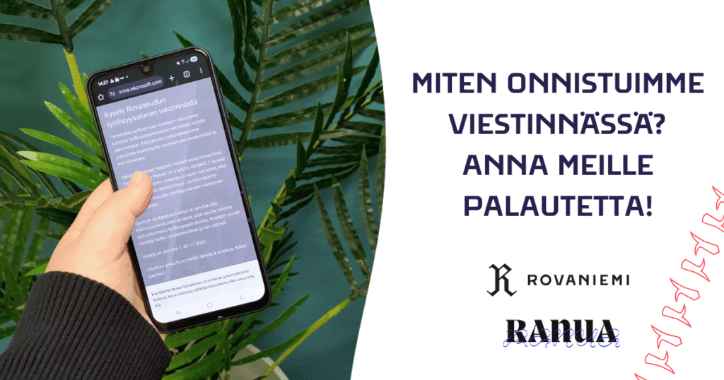 Rovaseudun työllisyysalueen viestintää halutaan kehittää entistä paremmaksi. Kyselyn avulla kartoitetaan rovaniemeläisten ja ranualaisten näkemyksiä siitä, miten työllisyysalue on onnistunut vuonna 2025 jakamaan tietoa työllisyyspalveluista.
