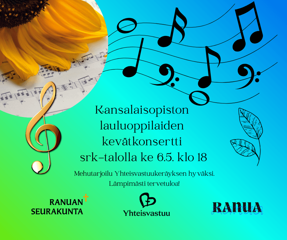 Ranuan kansalaisopiston kevään tapahtumat päättyvät perinteiseen lauluoppilaiden kevätkonserttiin.