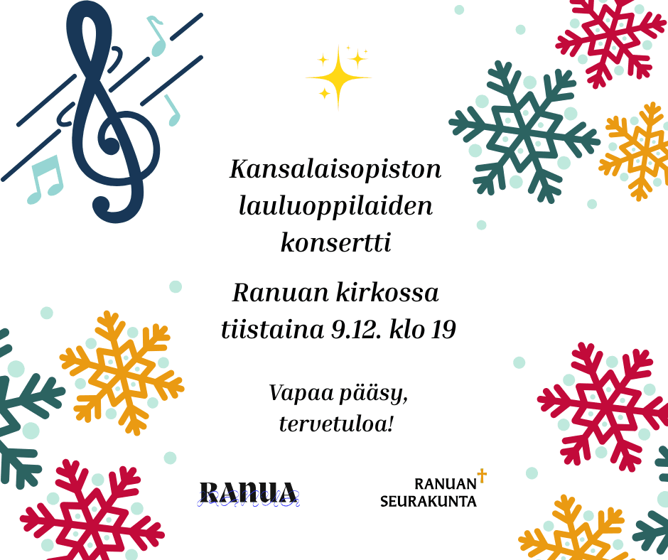 Kansalaisopiston lauluoppilaiden konsertti Ranuan kirkossa tiistaina 9.12. klo 19