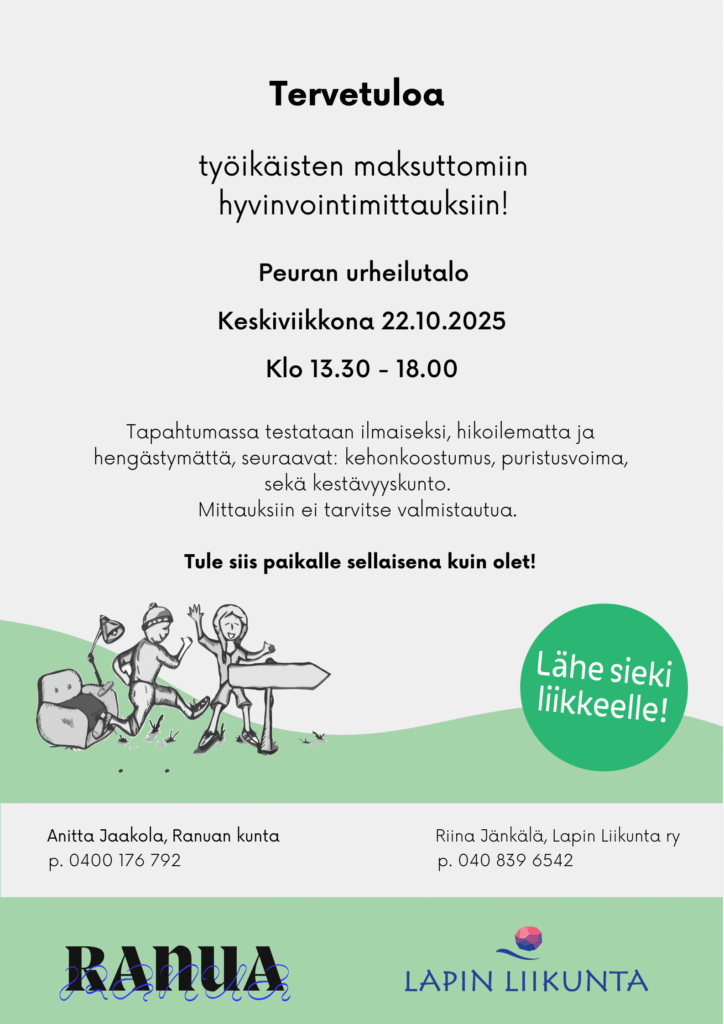 Lapissa konseptia on toteutettu aktiivisesti vuodesta 2013 lähtien. Nyt tämä matalan kynnyksen terveysliikuntatapahtuma saapuu jälleen Ranualle!