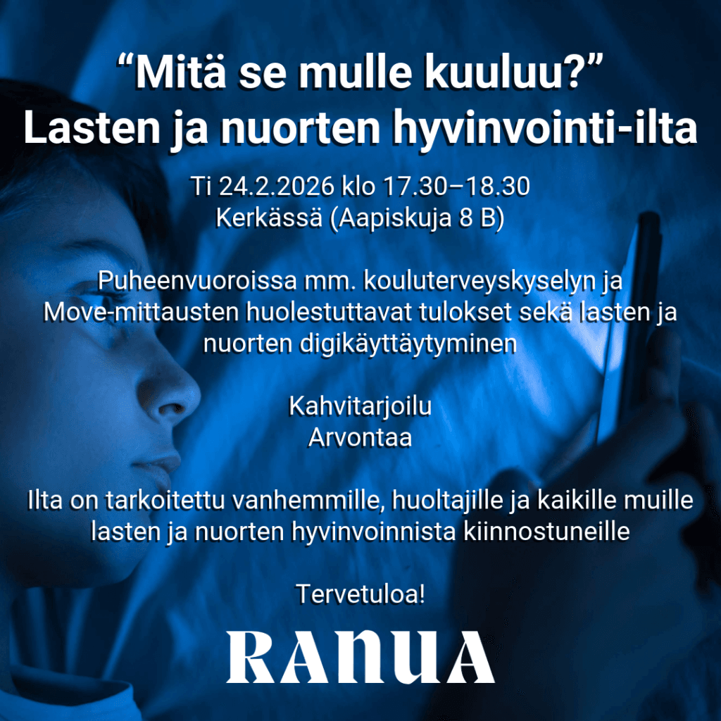 Tule kuulemaan ja keskustelemaan, mitä kouluterveyskyselyn ja Move-mittausten huolestuttavat tulokset oikeasti kertovat sekä miten digikäyttäytyminen vaikuttaa lasten ja nuorten arkeen.