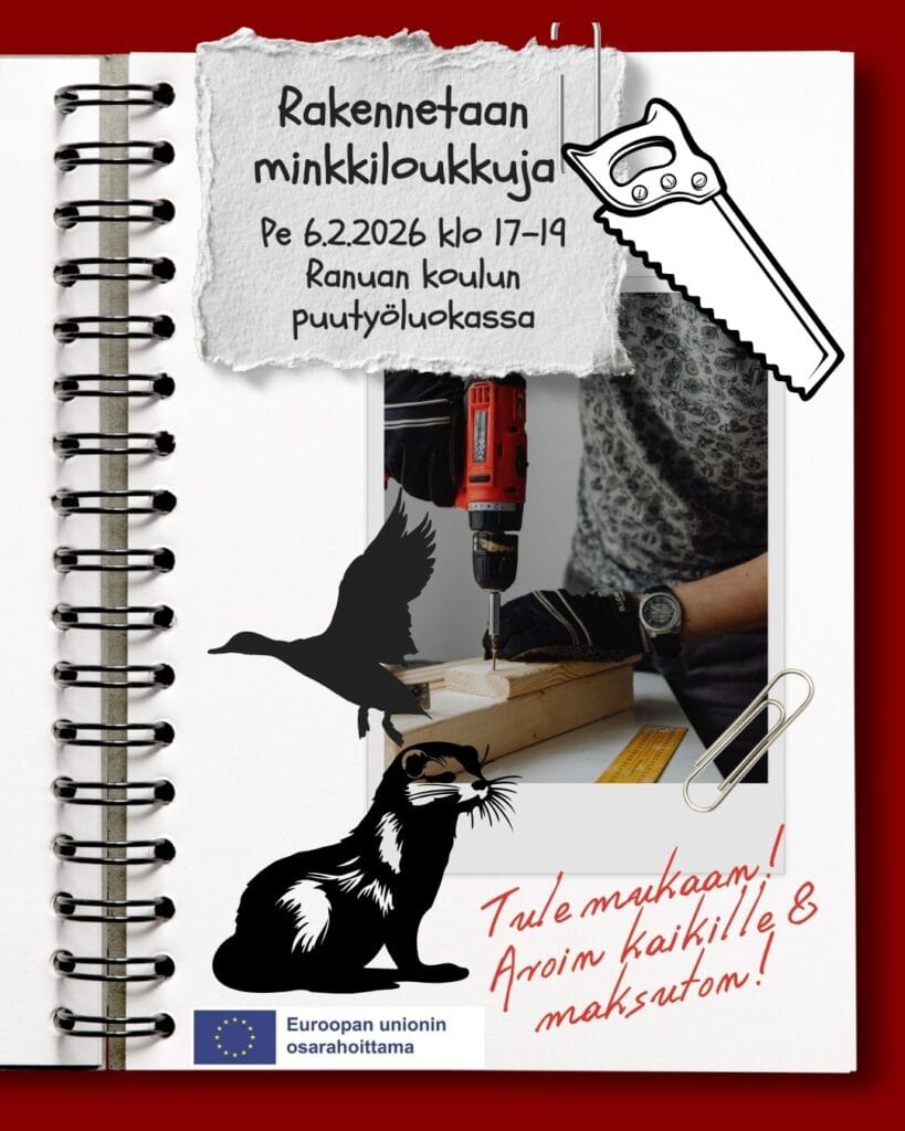 Tervetuloa mukaan nikkaroimaan minkkiloukkuja Ranuan Yhtenäiskoulun puutyöluokkaan perjantaina 6.2.2026 klo 17-19.