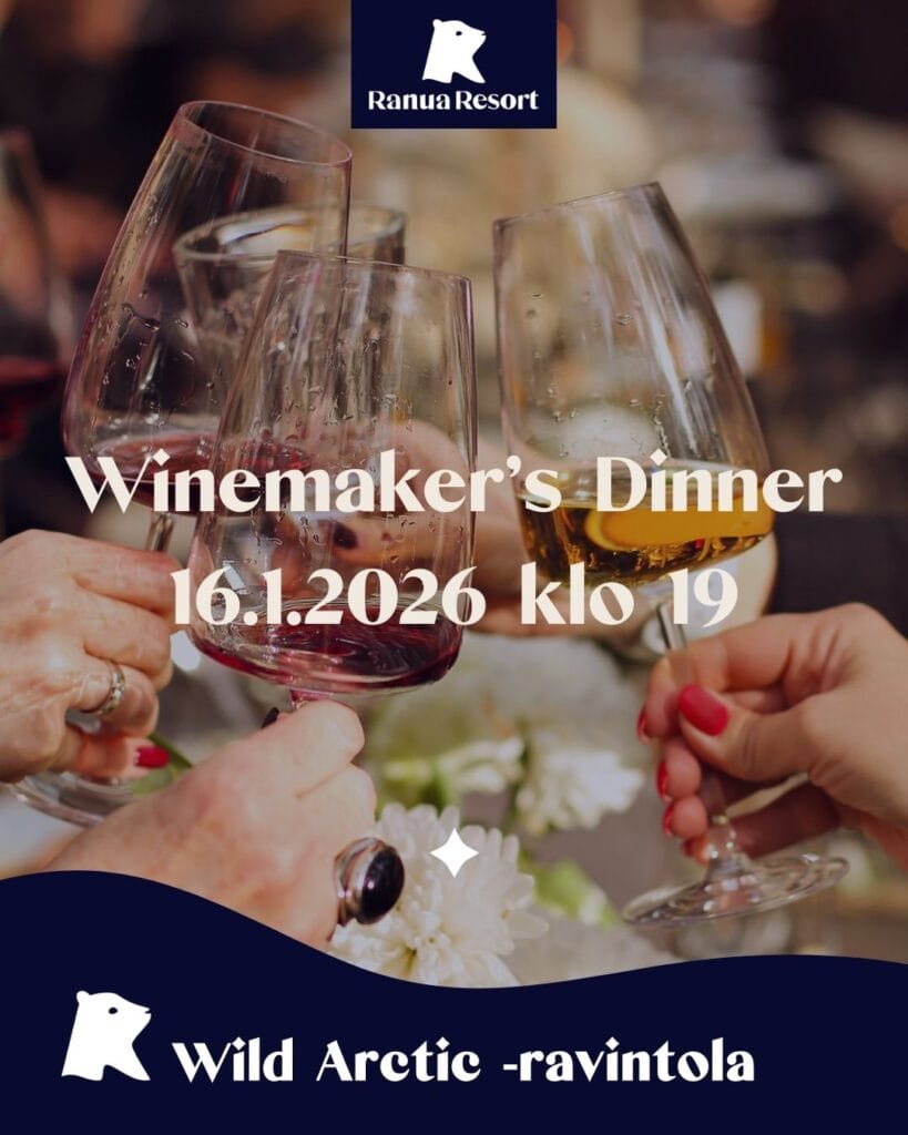 Nauti tunnelmallinen ilta perjantaina 16.1.2026 Wild Arctic -ravintolassa, jossa järjestetään Winemaker’s Dinner – upea viiden ruokalajin illallinen huolella valittujen viinien kera.